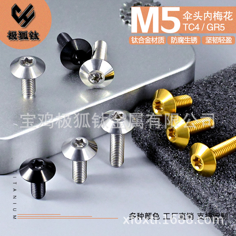Titanium Aloi M5 kepala payung plum blossom 12/15/20mm bantalan cangkang Motor Fender kaca depan baut tetap