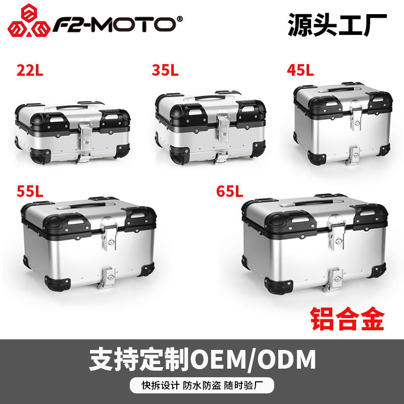 22L bagasi sepeda motor, kotak sudut bulat perak paduan aluminium bagasi tebal motor skuter belakang