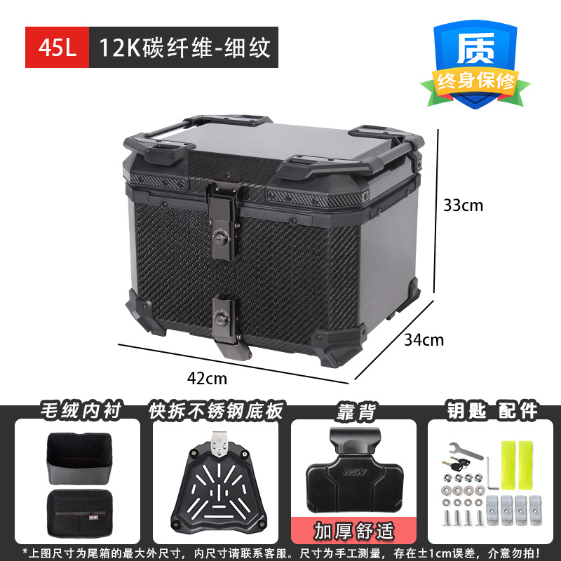 Kelas Aerospace 12K Karbon Fiber Tailbox Aluminium Kapasitas Besar Sepeda Motor Tailbox Skuter Mobil Listrik