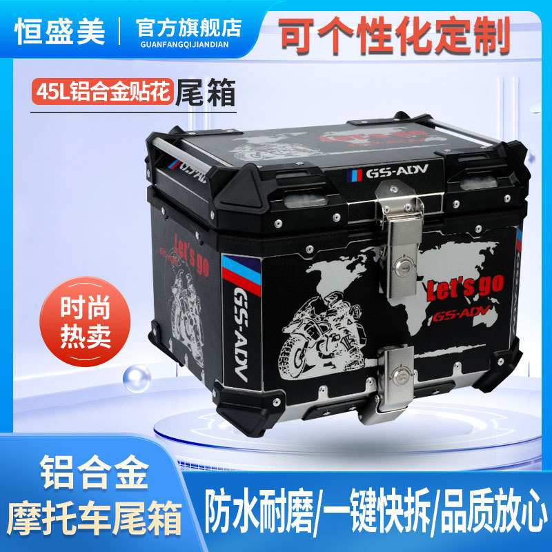 Bagasi sepeda motor baru 45L LA decal aluminium Aloi bagasi rilis cepat baseplate tahan air anti-tabrakan bagasi bagasi bagasi