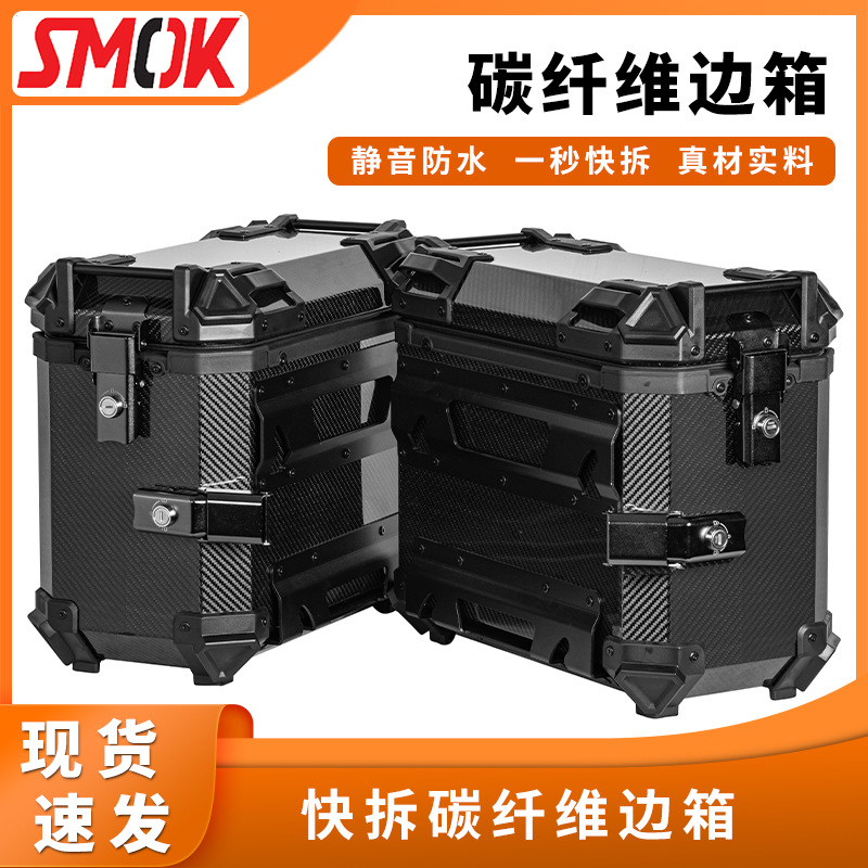 Kotak samping serat karbon 38L sepeda motor, bagasi kapasitas besar perlengkapan motor kotak gantung samping tahan air