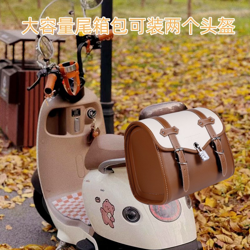 Sepeda Motor Cruise Retro Universal Kanvas Sisi Kulit Khatan Tas Ekor Aksesori Modifikasi Pelayaran Cepat Instalasi