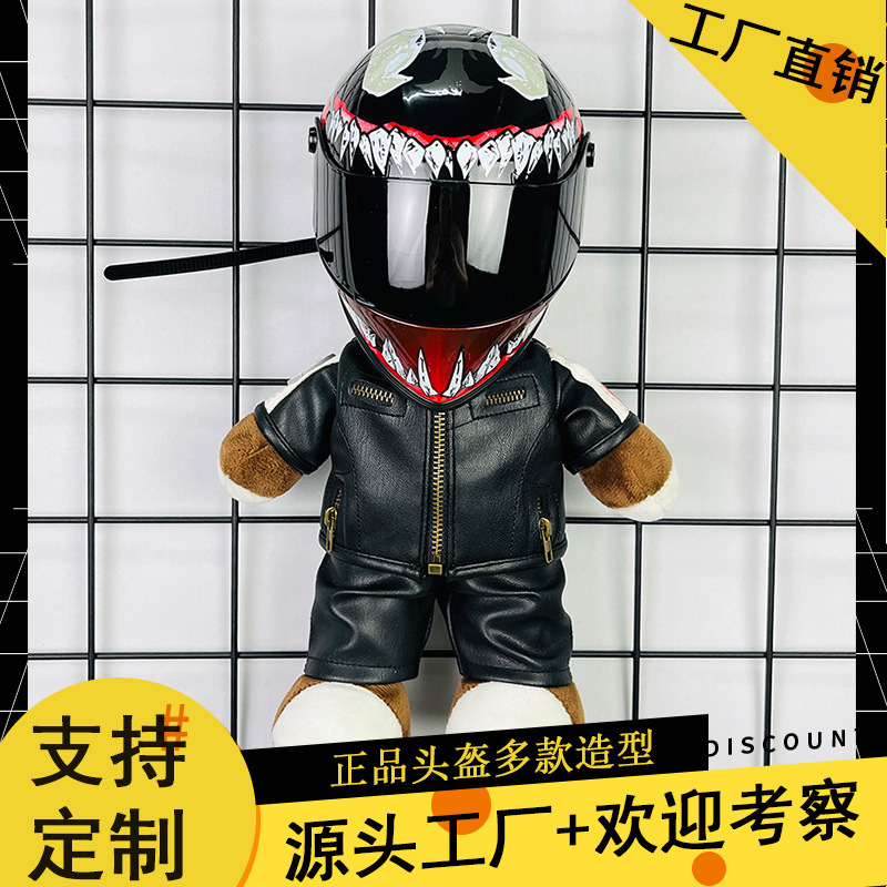 Boneka motor kulit hitam, boneka beruang helm hadiah ulang tahun liontin hadiah kompetisi, boneka bagasi motor