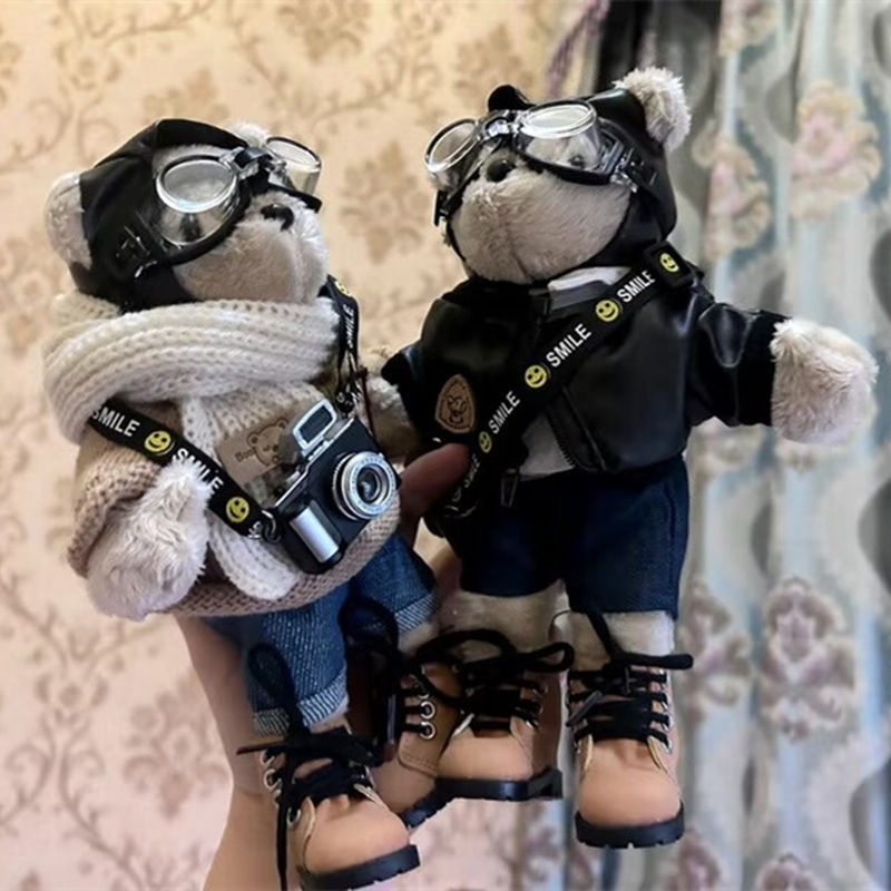 Pilot beruang musim panas yang keren dandanan boneka berbulu dog lokomotif gesper mobil hadiah kreatif