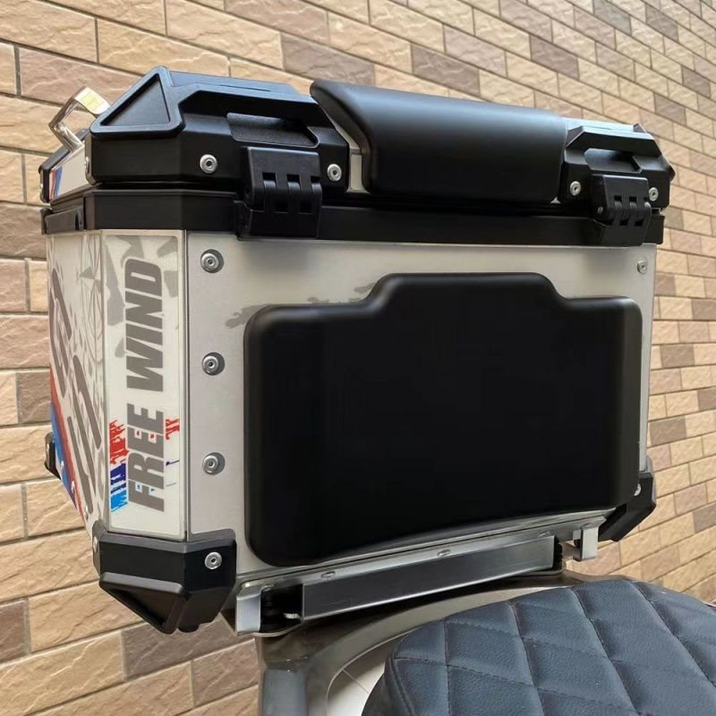 Bantal sandaran kotak penyimpanan motor berbahan PU foam dengan lapisan kulit imitasi dan rangka aluminium untuk motor touring, peredam guncangan elastis tinggi