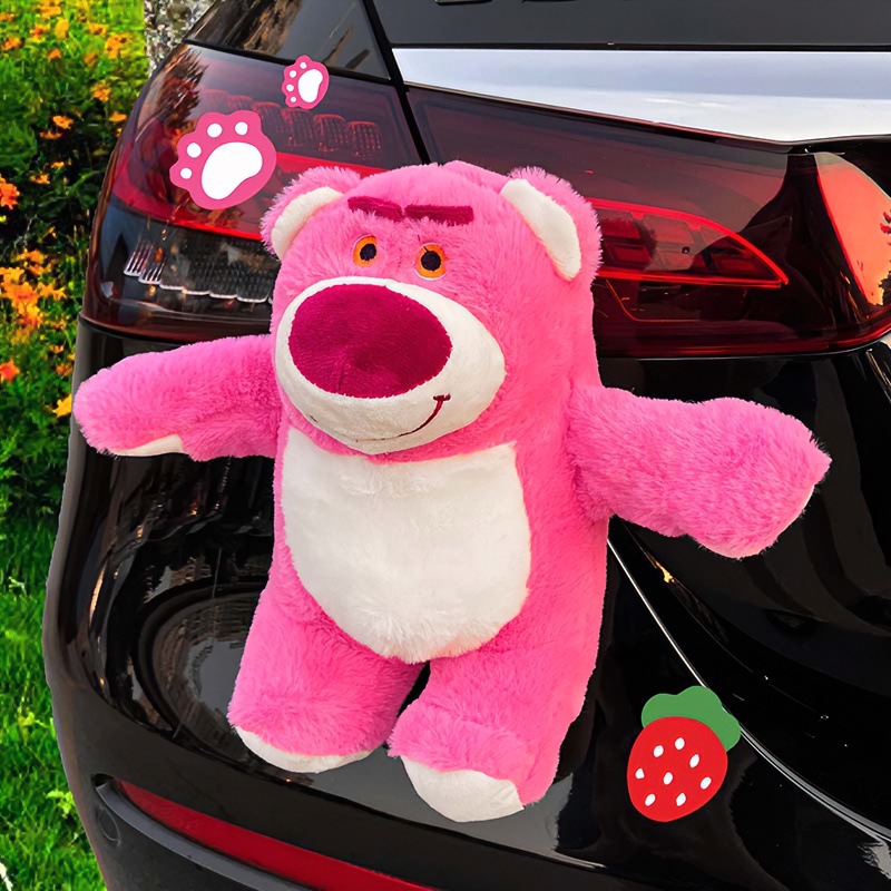 Ornamen bagasi boneka mobil, liontin ekor mobil luar boneka dekorasi sepeda motor kartun stroberi beruang lucu