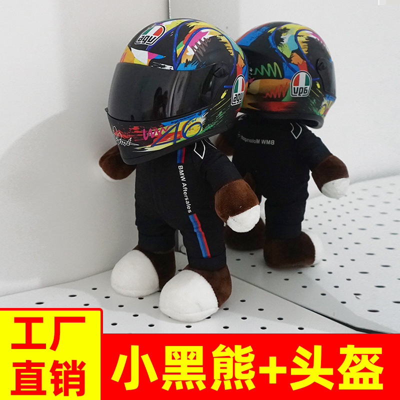 Helm sepeda motor beruang, dekorasi bagasi mengendarai sepeda motor perjalanan mobil sepeda motor liontin Perjalanan 4s hadiah boneka mewah sepeda motor