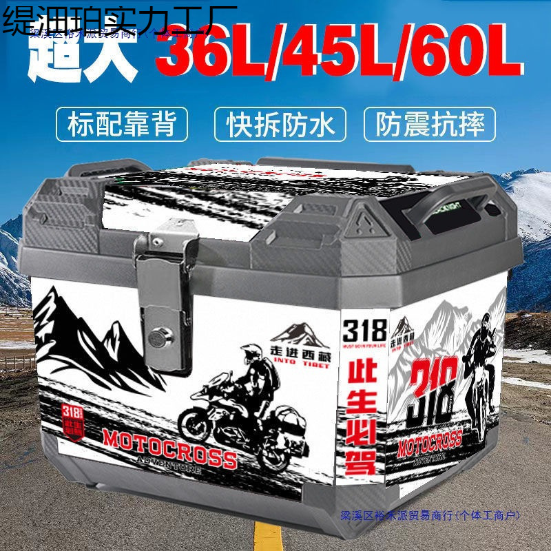 Breden 45L kotak ekor motor bahan plastik ABS, kotak ekor motor kapasitas besar bagasi ekstra besar