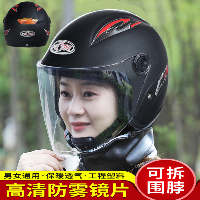 Helm mobil listrik standar nasional wanita, helm hangat empat musim anti-kabut syal dapat dilepas empat musim, helm setengah besar untuk pria dan wanita