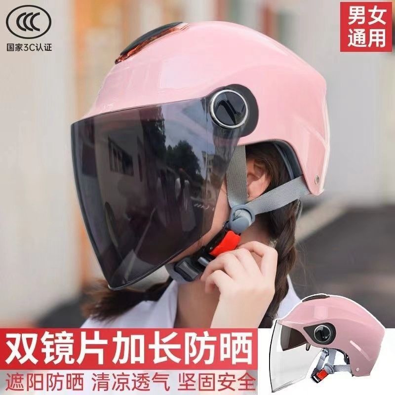 3C Sertifikasi HD Pelindung Terik Sinar Matahari Ganda Helm Mobil Listrik Wanita Musim Panas Half Helm Ringan Mengendarai Helm