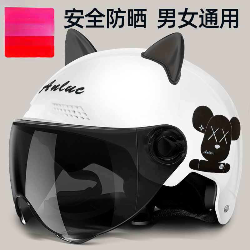 Helm Sepeda Motor Listrik Pria dan Wanita Lucu Musim Panas Empat Musim Ringan Setengah Helm Mobil Baterai Helm Tempat Detik