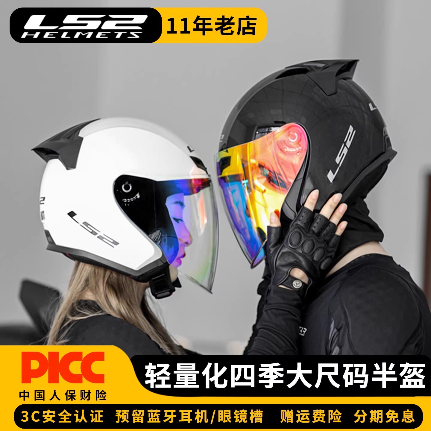 Ls2 helm berkendara motor elektrik, tiga perempat ukuran besar untuk pria dan wanita musim dingin