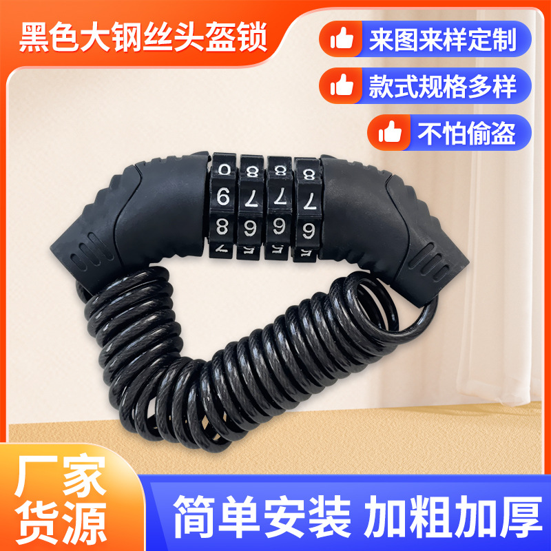 Hitam Besar Kawat Baja Kunci Helm Sepeda Gunung Kunci Sandi Portabel Kunci Helm Sepeda Motor Kunci Anti Pencurian Grosir
