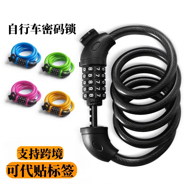 Kunci kabel portabel panjang sepeda mobil listrik lintas batas kunci lima digit kata sandi antimaling kunci Aksesori berkendara luar ruangan grosir