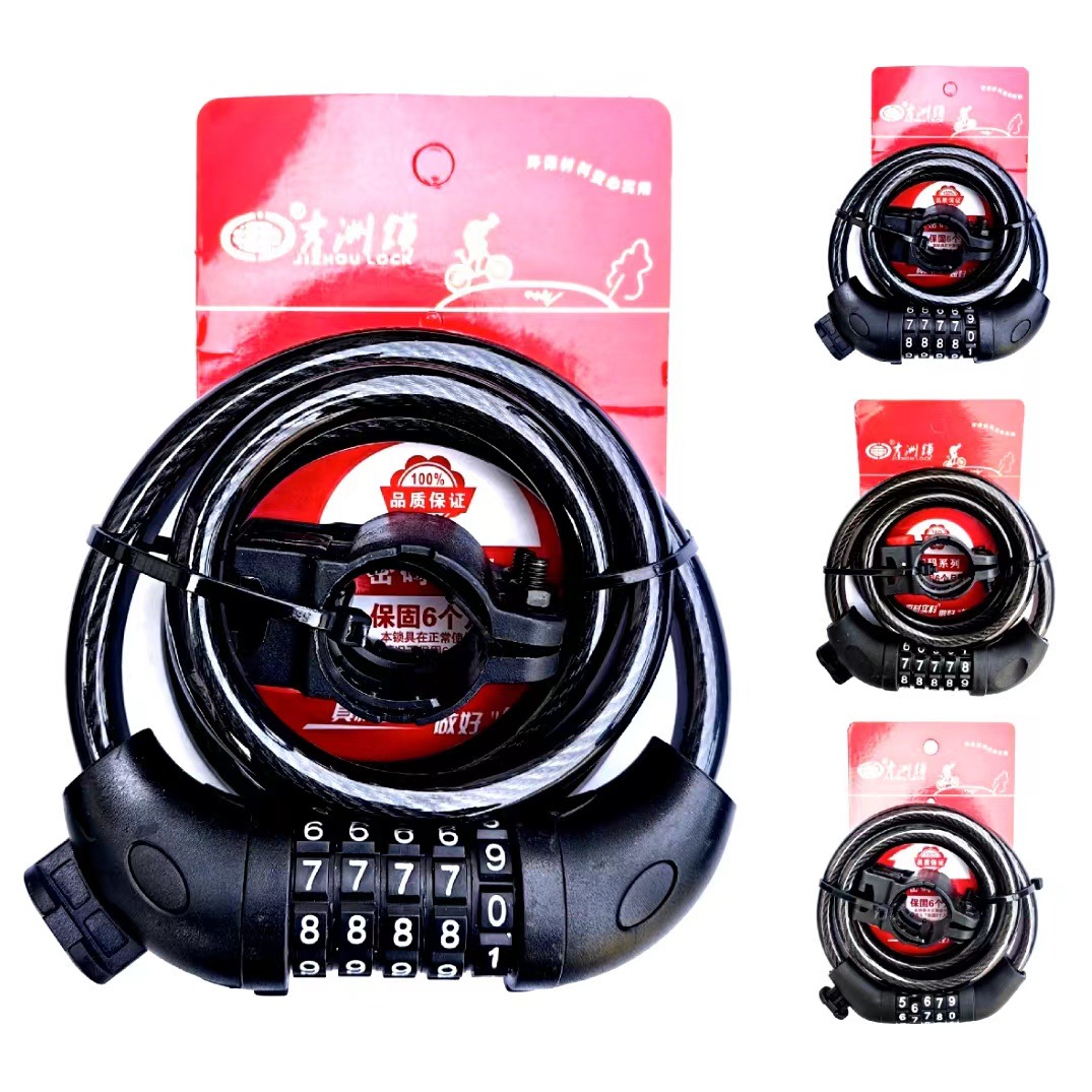 Jizhou kunci sepeda motor lima-digit kata sandi, cincin tetap pit gunung anti Maling kunci kabel