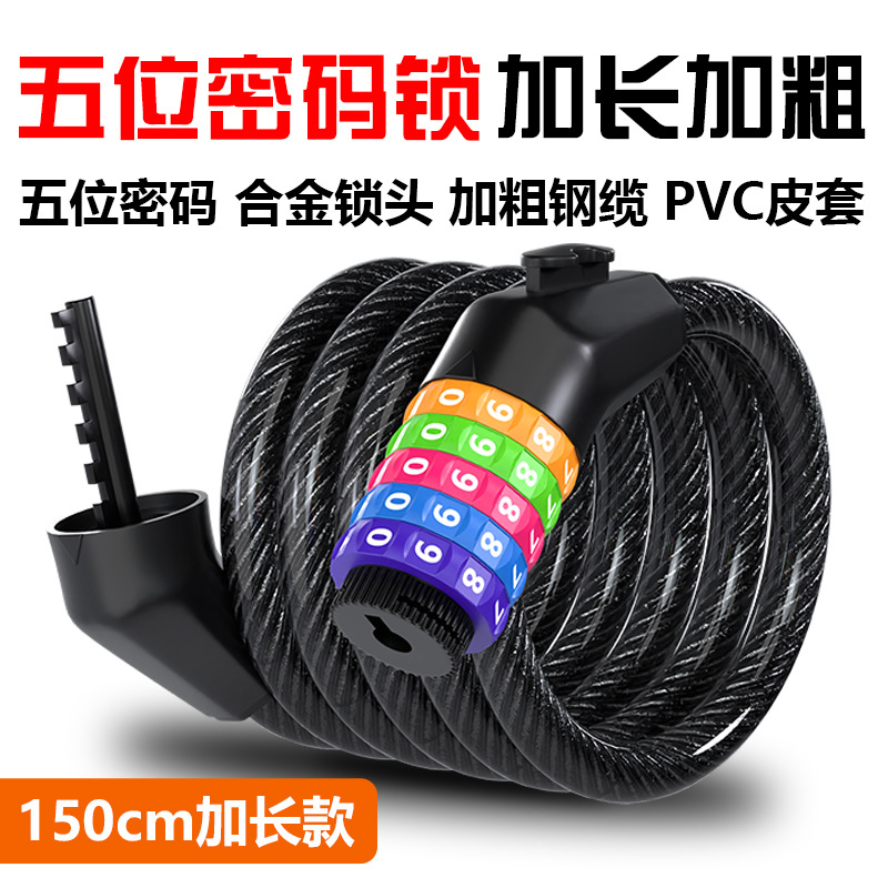Cross-border kunci kata sandi sepeda populer kunci kawat baja anti-gunting kunci sepeda kunci lima digit kata sandi dengan kunci mobil braket