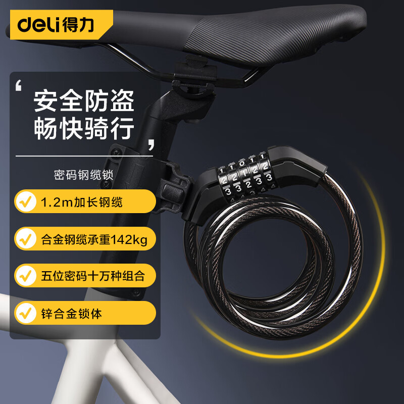 Deli kunci sepeda lima digit kata sandi kabel baja tebal anti-maling mobil listrik sepeda gunung rantai kunci DL508011