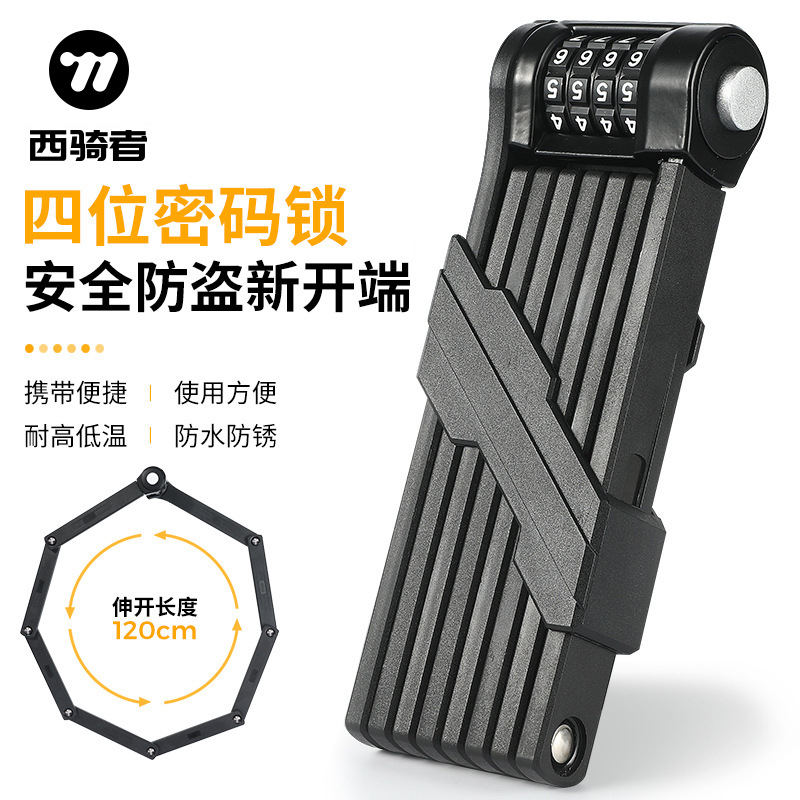 WEST BIKING kunci rantai sepeda anti-maling, kunci kata sandi kunci lipat peralatan berkendara sepeda gunung
