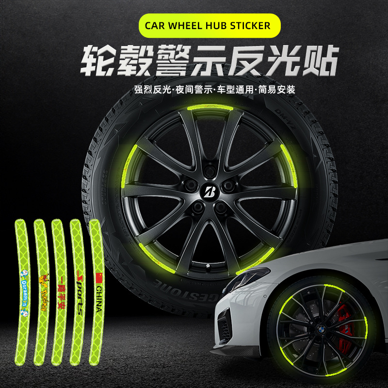 Stiker reflektif Roda mobil, stiker reflektif peringatan ban, Stiker anti tabrakan, hijau dekorasi, kreatif, sepeda motor, mobil listrik