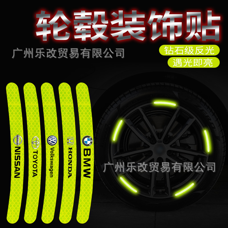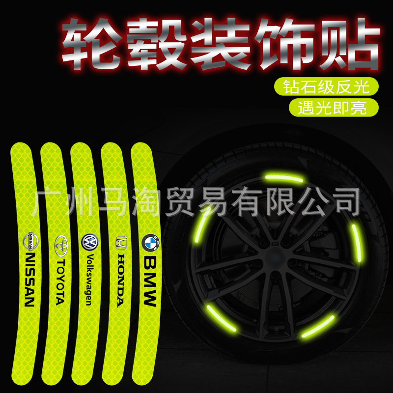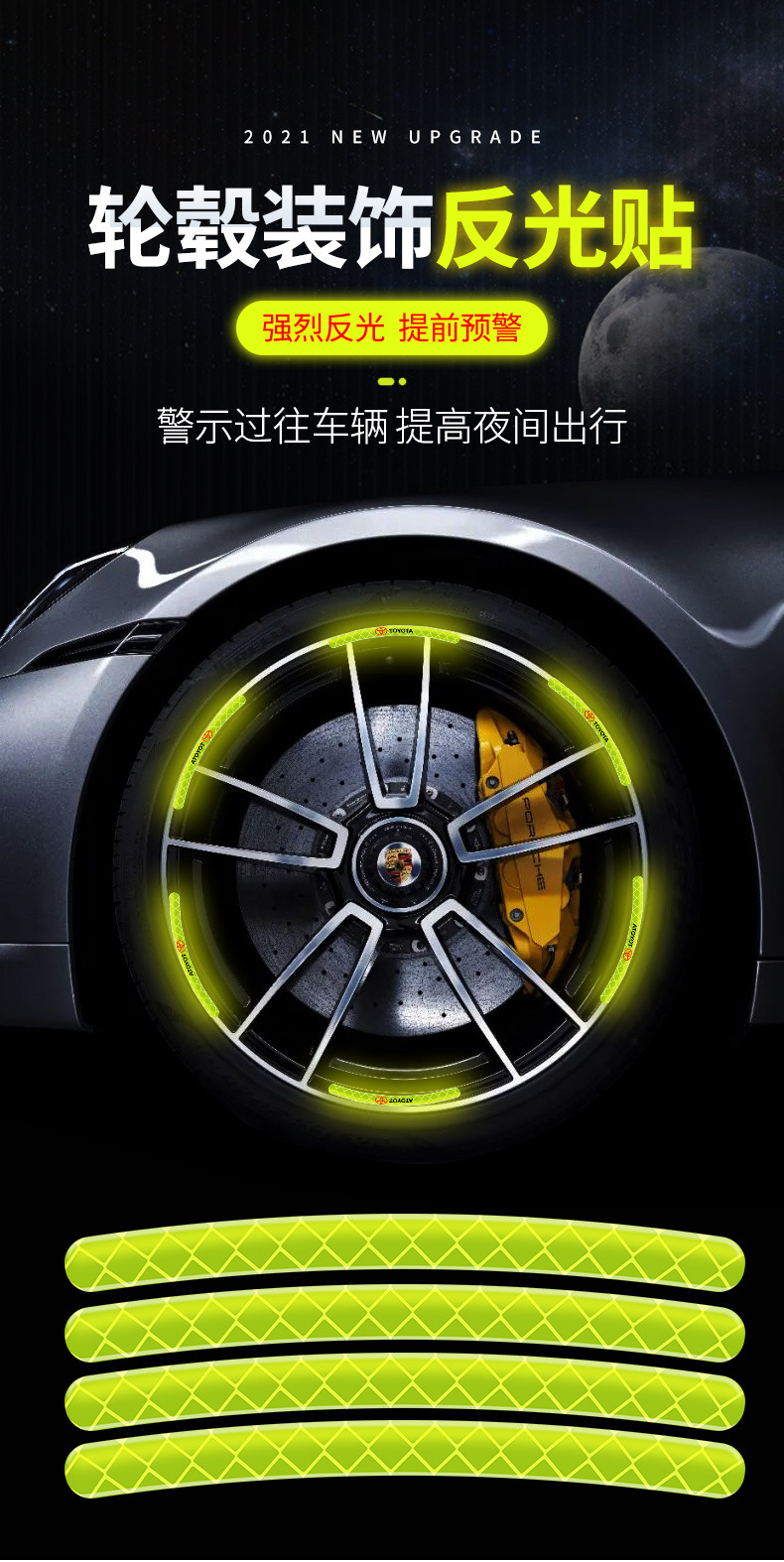 Stiker mobil, penutup hub roda mobil strip bercahaya stiker mobil truk sepeda motor hub roda reflektif kreatif dipersonalisasi dekorasi stiker label mobil