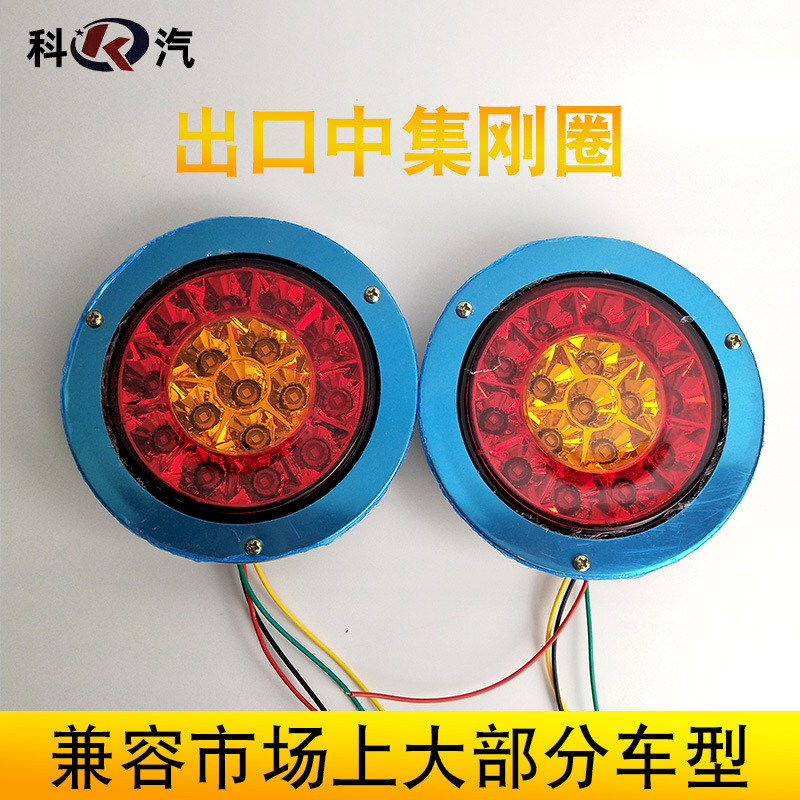 Lampu belakang LED, lampu belakang semi-trailer, set besar, lampu rem kemudi, lampu belakang LED, outlet bulat, cincin baja set sedang
