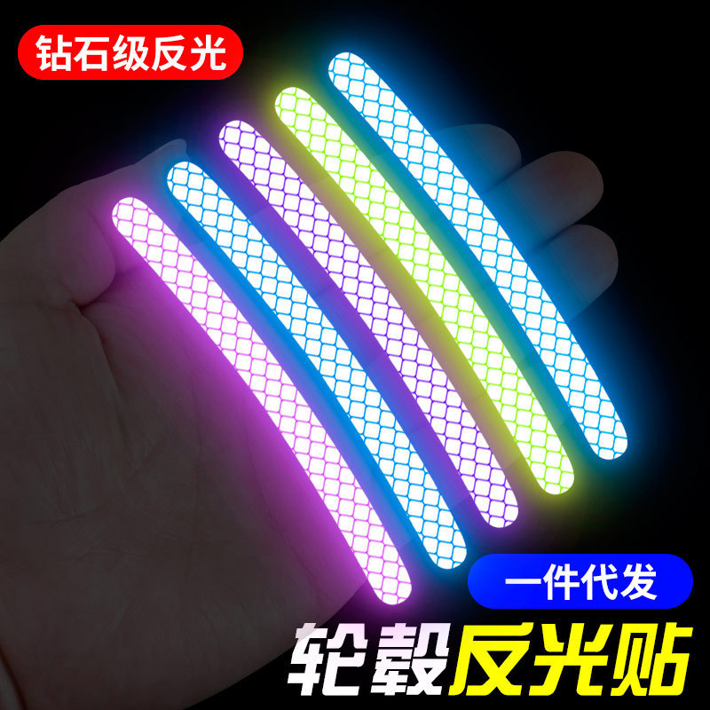 Perlengkapan dekorasi mobil, stiker reflektif hub roda mobil kepribadian kreatif, stiker perekat anti tabrakan, stiker sepeda motor mobil listrik