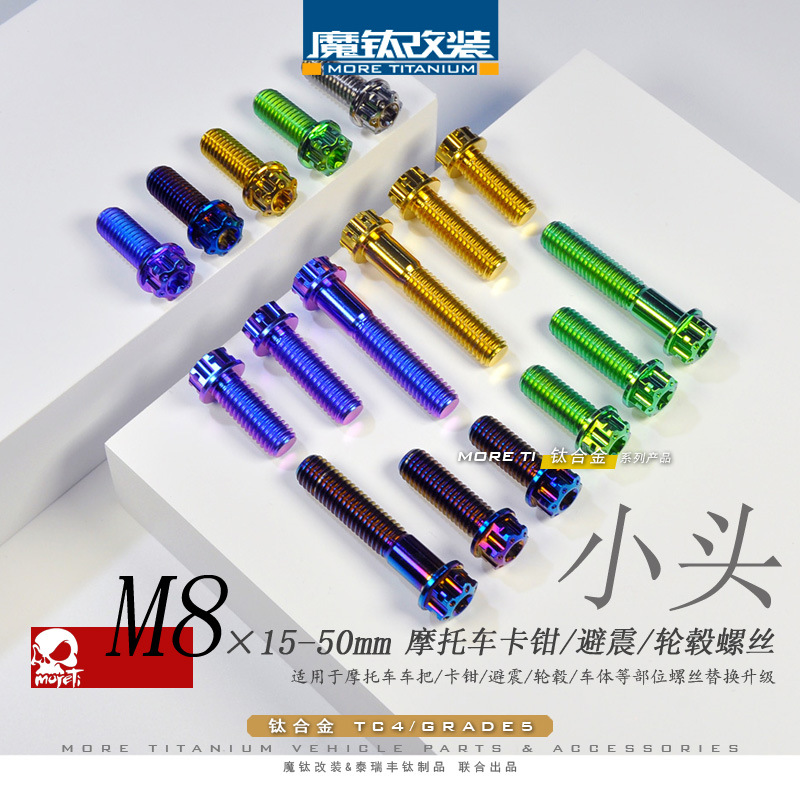 Pegangan roda kaliper sepeda motor M8 sekrup kepala flange pola Aloi titanium ajaib
