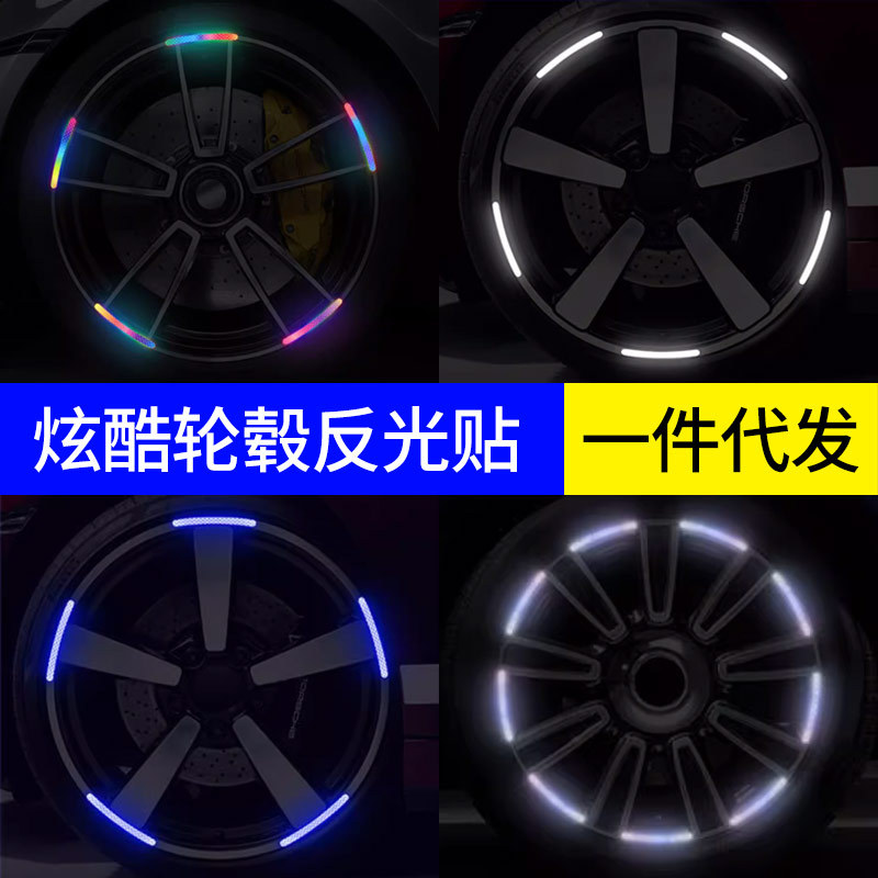 Stiker hub roda mobil, stiker hub roda neon peringatan reflektif listrik mobil sepeda motor sepeda stiker bercahaya warna-warni