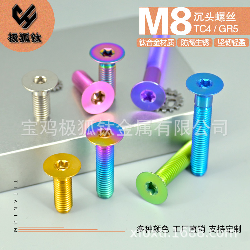 Sekrup titanium alloy mobil berlapis warna mur velg titanium bagian pengolahan titanium bagian standar pengolahan kustom sekrup kepala tenggelam