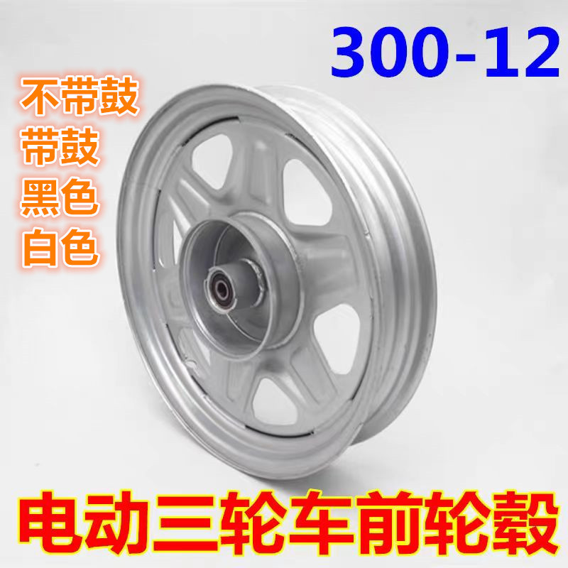 300-12 roda depan listrik roda tiga depan hub roda dengan drum/tanpa drum/hitam/putih rim