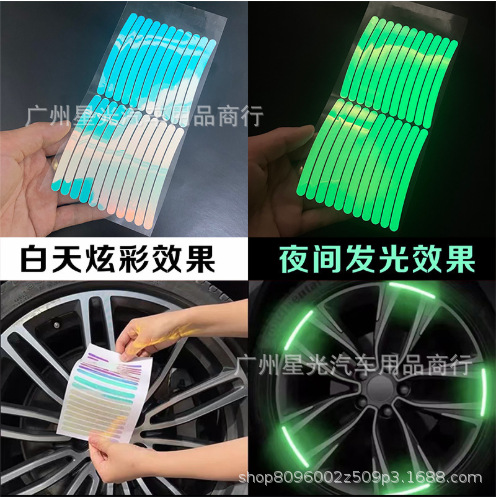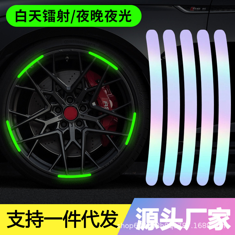 Stiker Luminous Ban Mobil Stiker Laser Reflektif Warna Warna-warni Stiker Lampu Malam Anti Tabrakan Ban Sepeda Motor Kendaraan Listrik