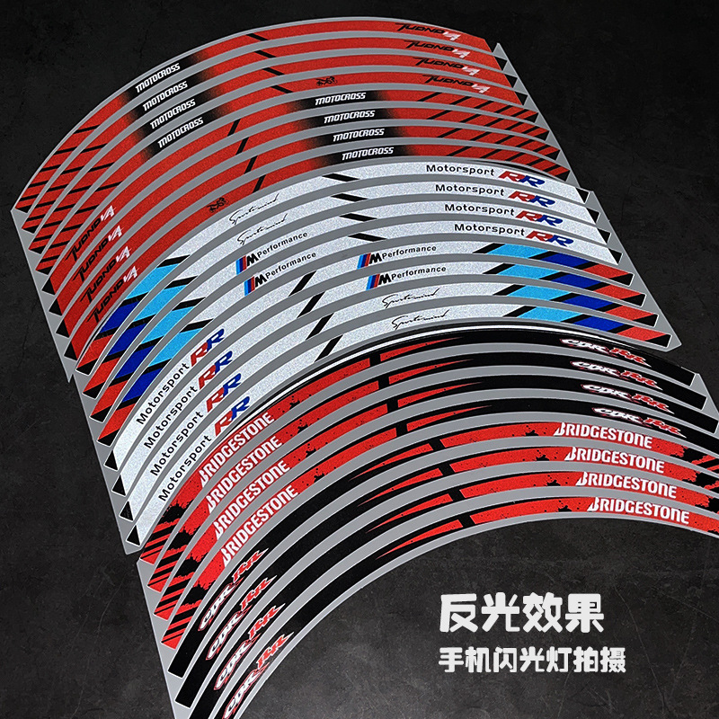 Stiker hub roda sepeda motor, dekorasi personalisasi reflektif tahan air kreatif dimodifikasi cincin baja 17 inci Universal