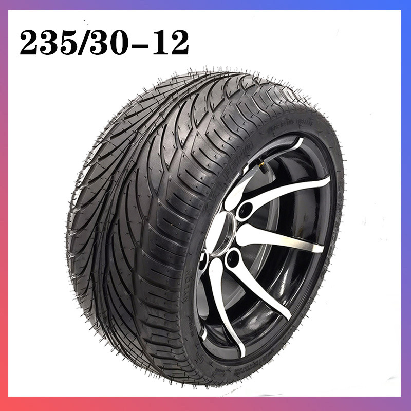 Aksesori sepeda motor pantai, tiga roda terbalik 235/30-12 inci vakum ban jalan datar + hub roda aluminium