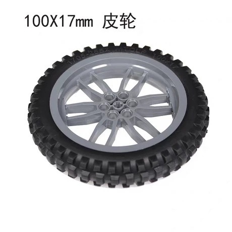 Partikel Kecil Blok Bangunan Mobil Off-Road Sepeda Motor Moc Ban 11957 88517 Roda 100.6x17mm