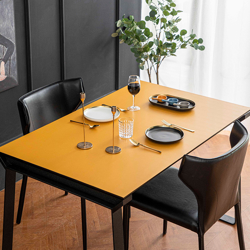Taplak meja kulit warna solid dua sisi, taplak meja persegi panjang tahan minyak tahan air, taplak meja kopi kulit pu
