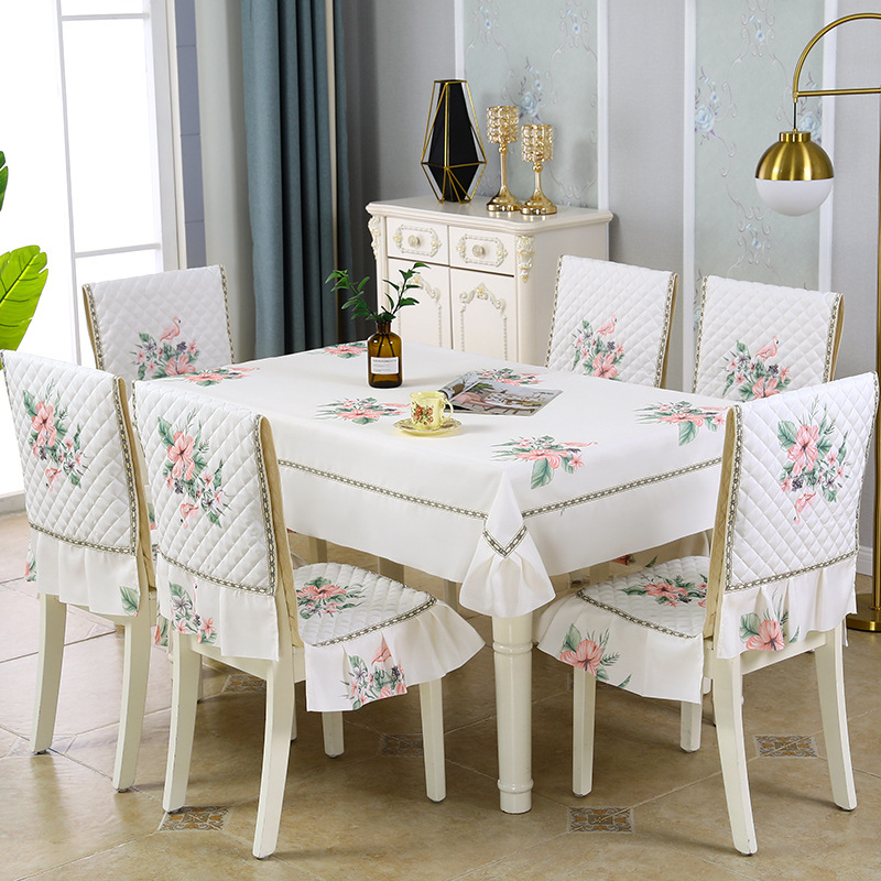 Penutup bantal kursi, satu buah bantal kursi sandaran, setelan taplak meja makan, kain penutup meja makan