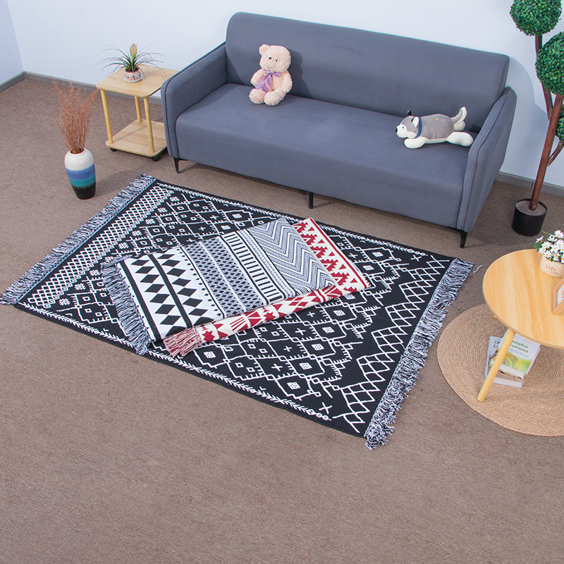 Karpet Tenun Model Jacquard Katun Linen Gaya Etnik Eropa Utara Sisi Tempat Tidur Kamar Tidur Sofa Ruang Tamu Alas Lantai Tatami Rumbai