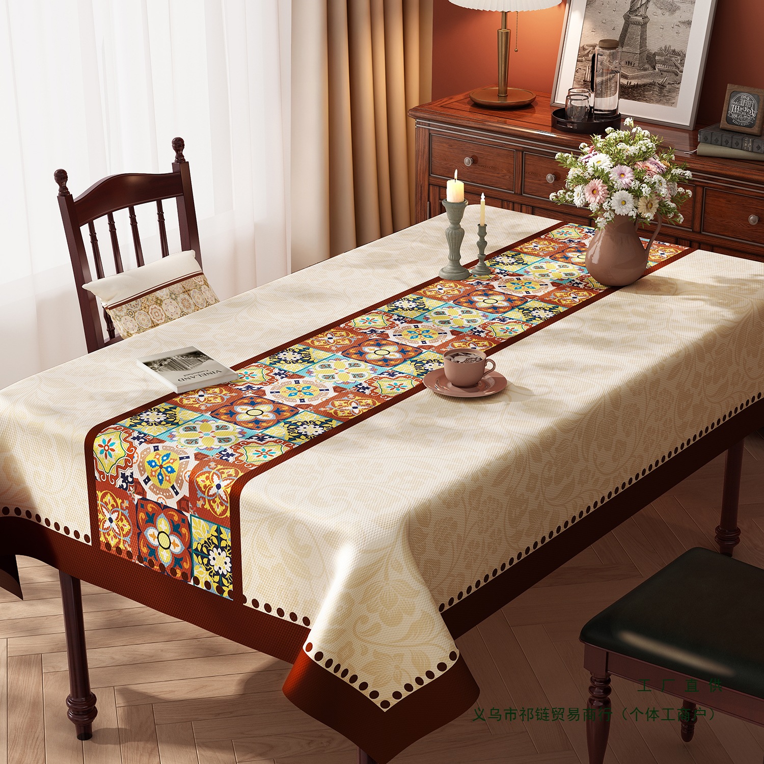 Taplak Meja Gaya Amerika Tahan Air Anti Minyak Anti Pencucian Anti Panas Taplak Meja Makan Alas Pelindung Meja Meja Kopi Persegi Ringan Mewah