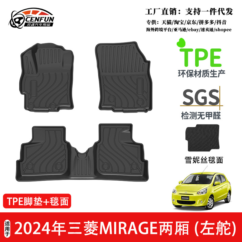 Berlaku untuk 2024 Mitsubishi MIRAGE hatchback kiri kemudi mobil lapisan ganda tikar kaki TPE tahan air ramah lingkungan tidak berbau