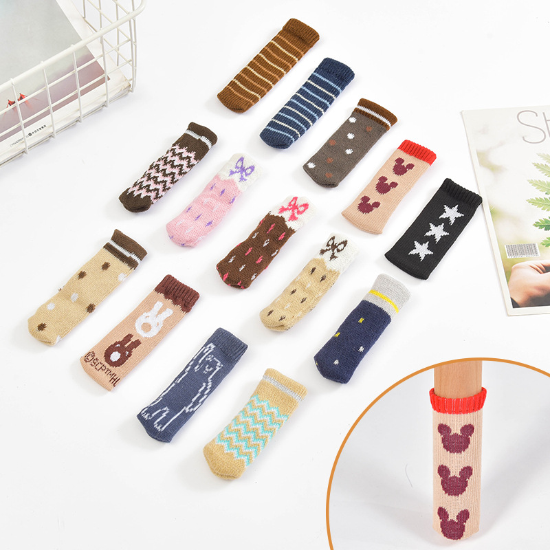 Sarung kaki meja rajut, penutup pelindung gagang pintu kartun tebal anti selip tahan aus lapisan ganda pelindung wol kaki kursi