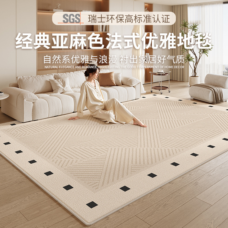 Karpet Gaya Krim Prancis Alas Lantai Kamar Tidur Sofa Superior Mewah Ringan Tanpa Cuci Model Baru 2025 Ruang Tamu Tahan Kotor dan Mudah Diperawatan