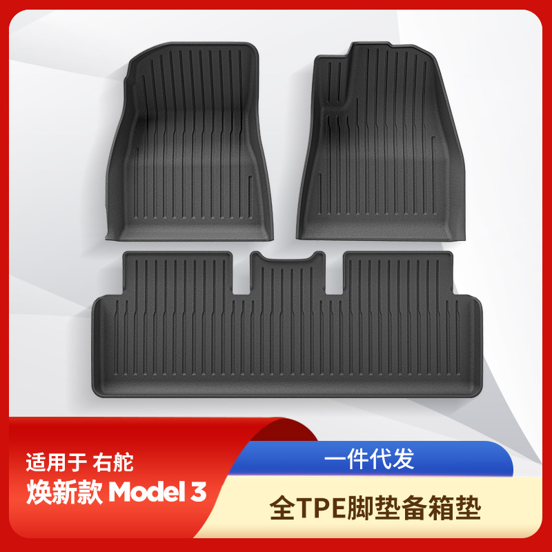 Cocok untuk 24 Model Kemudi Kanan Alas Kaki Mobil Model Baru Tesla Model 3 Alas Kaki TPE Injeksi Rambut Pabrik