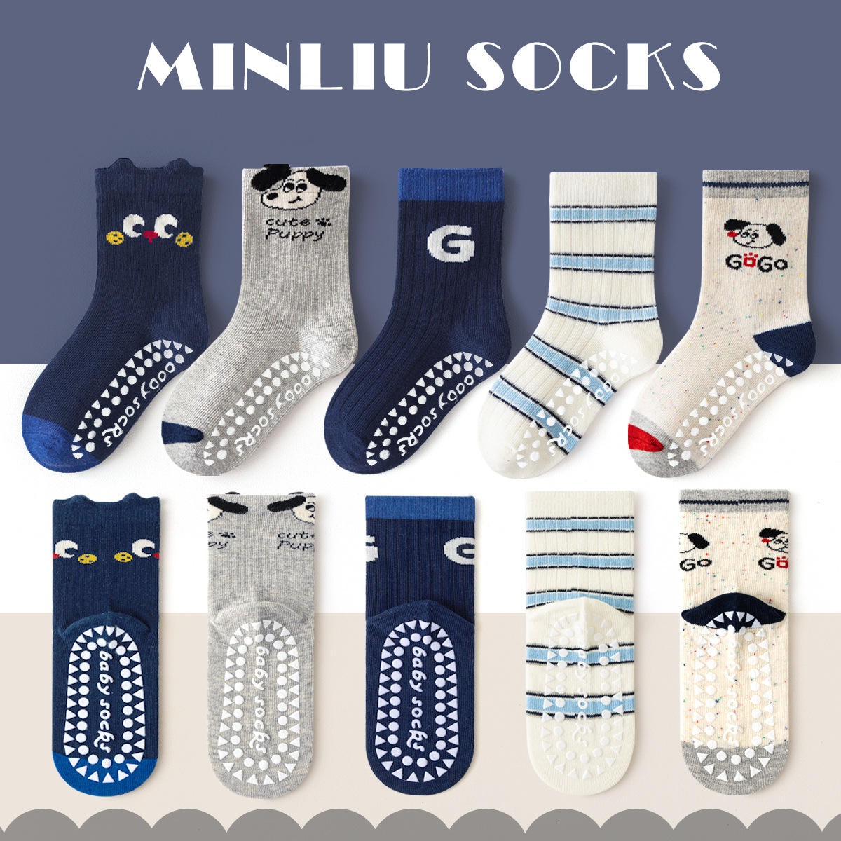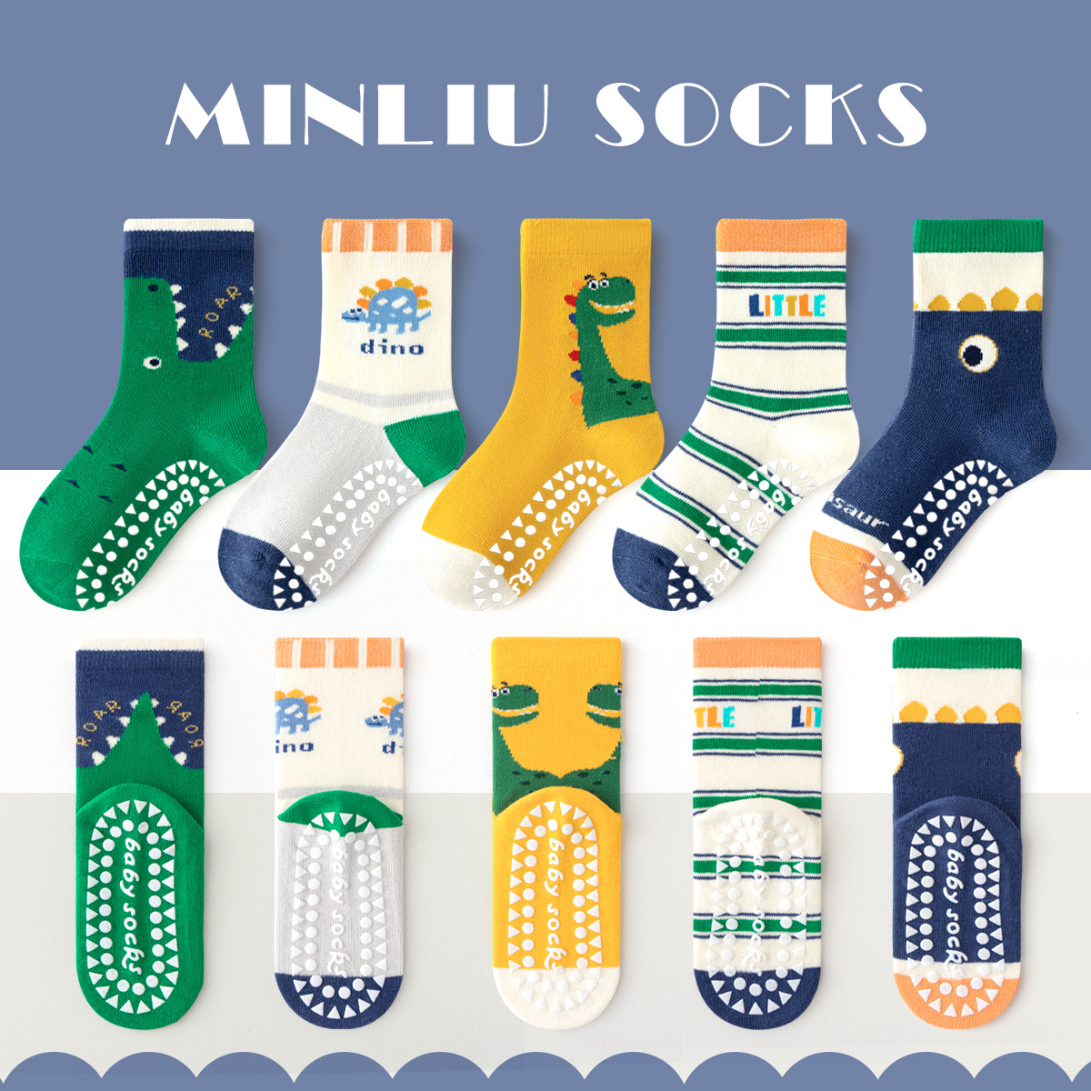 防滑地板袜秋冬儿童袜子A类男童袜子卡通中筒袜春秋宝宝室内学步