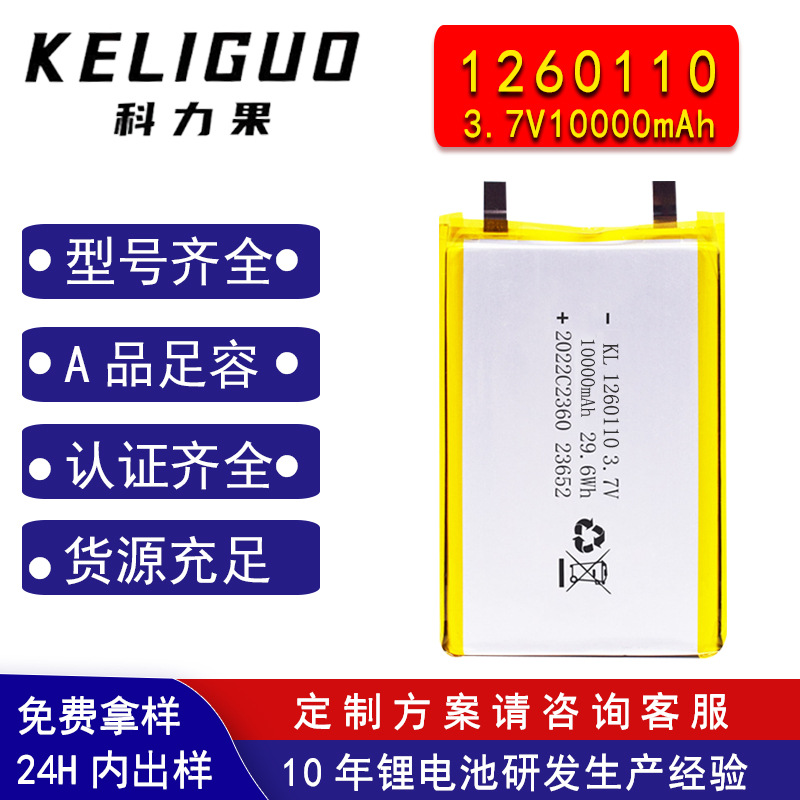 1260110 sel polimer 10000mAh 3.7V penyapu daya paket lunak baterai lithium baterai lithium