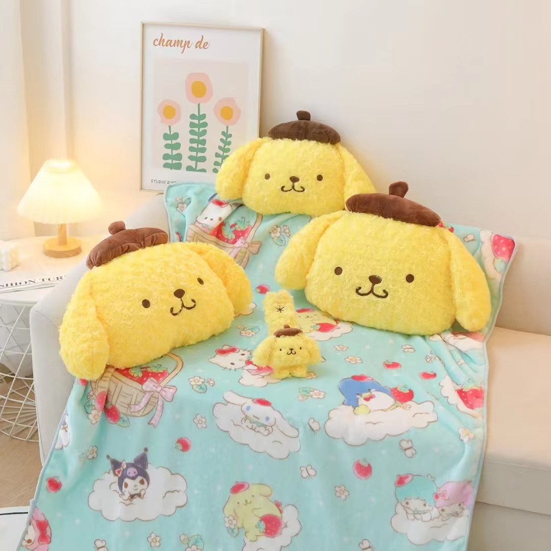 Bantal anjing puding Jepang lucu kartun selimut dua dalam satu istirahat makan siang selimut AC sandaran kepala mobil penutup sabuk pengaman