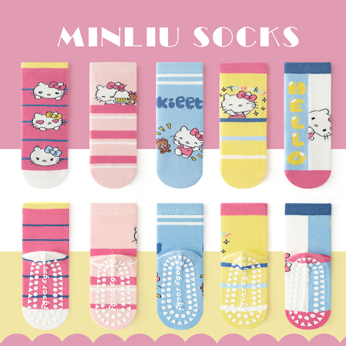 Kaus Kaki Lantai Anti Licin Musim Gugur dan Musim Dingin 2025 Kaus Kaki Anak-Anak Kaos Kaki Sedang Kartun Kaos Kaki Katun Tipe A Anak Sedang Besar Kucing Warna Merah Muda
