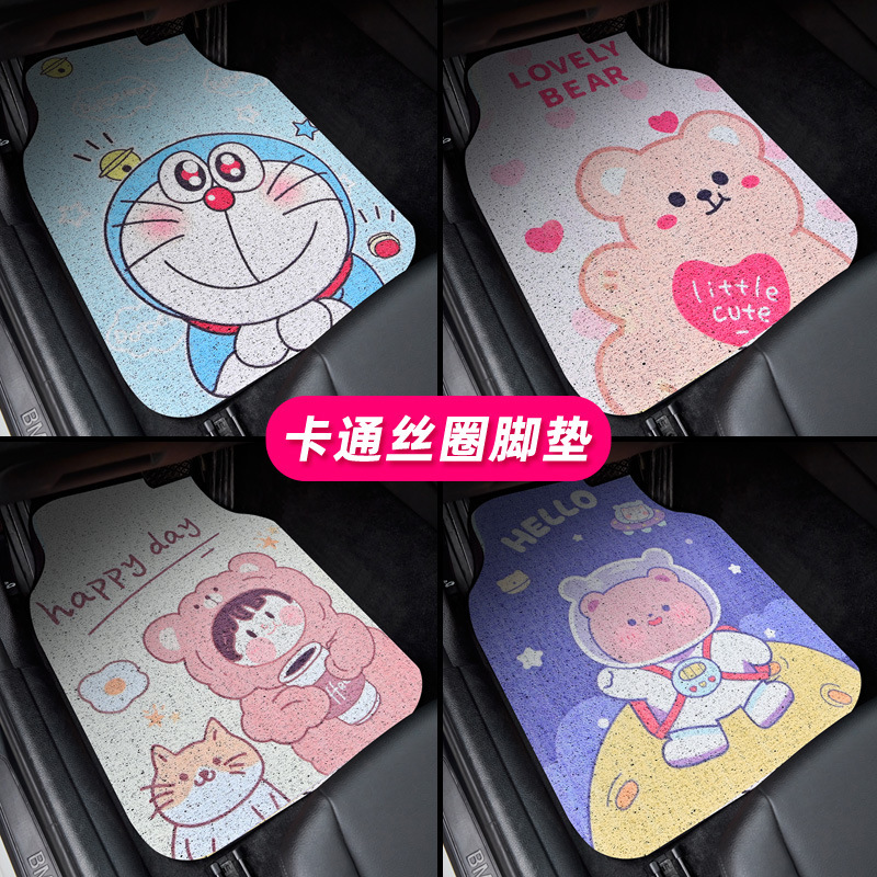 Coolomi kartun matras kaki mobil loop kawat alas kaki Mobil universal utama mengemudi bersama set tikar non-slip tikar lantai tahan noda