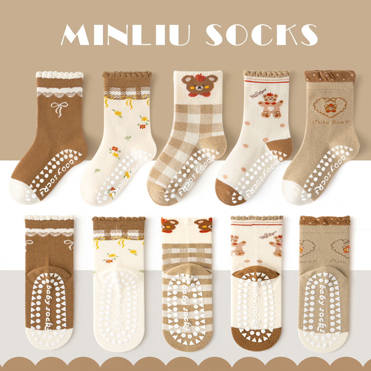 2023 baru kaus kaki boneka kartun imut jarum ganda kaus kaki anak sapi sedang kaus kaki lantai dispenser antiselip INS
