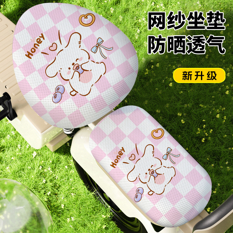 Sarung jok kendaraan listrik, sarung jok jala sandwich, jok sepeda listrik, jok belakang motor listrik yang dipertebal.