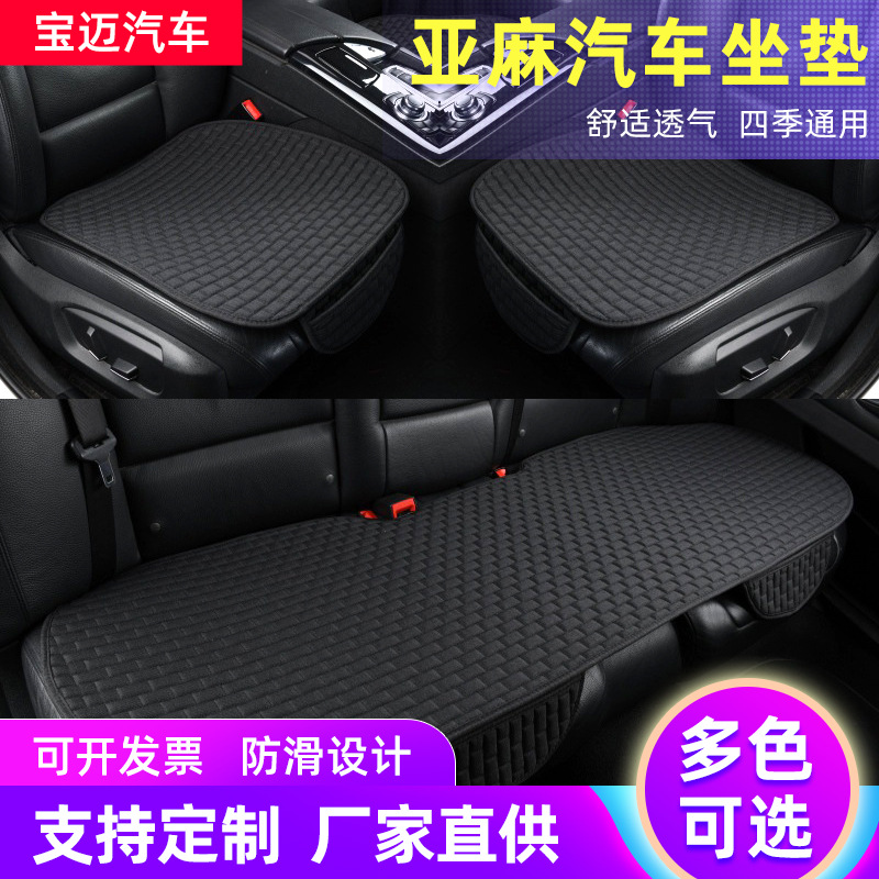 Bantal kursi mobil pabrik, empat musim universal, lima kursi linen, tiga potong, bernapas, anti-selip, sarung kursi mobil tanpa sandaran